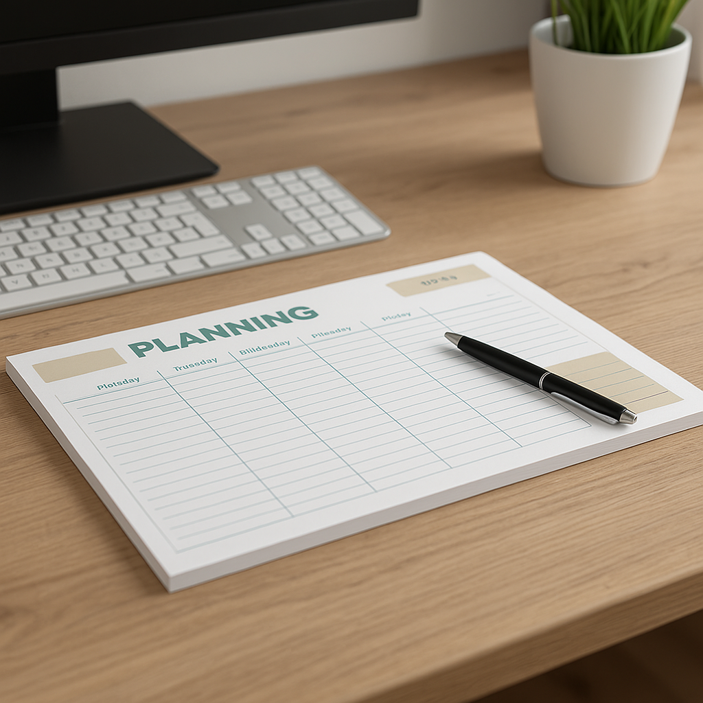 Organizza il lavoro, gli appuntamenti e le priorità con il nostro planning settimanale da tavolo 40x30 cm, perfetto per scrivanie di uffici, studi e ambienti di lavoro dinamici. Ogni blocco è composto da 60 fogli incollati in testa, in carta uso mano da 80 g/m², ideali per scrivere con qualsiasi penna o matita.