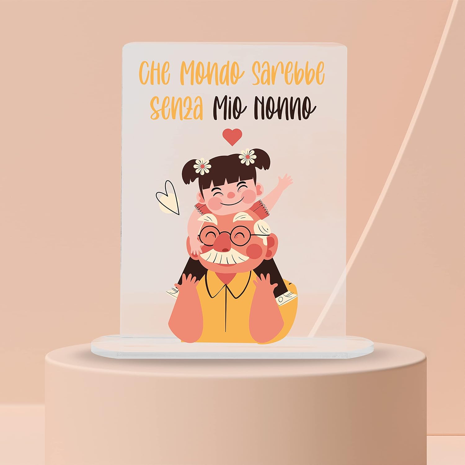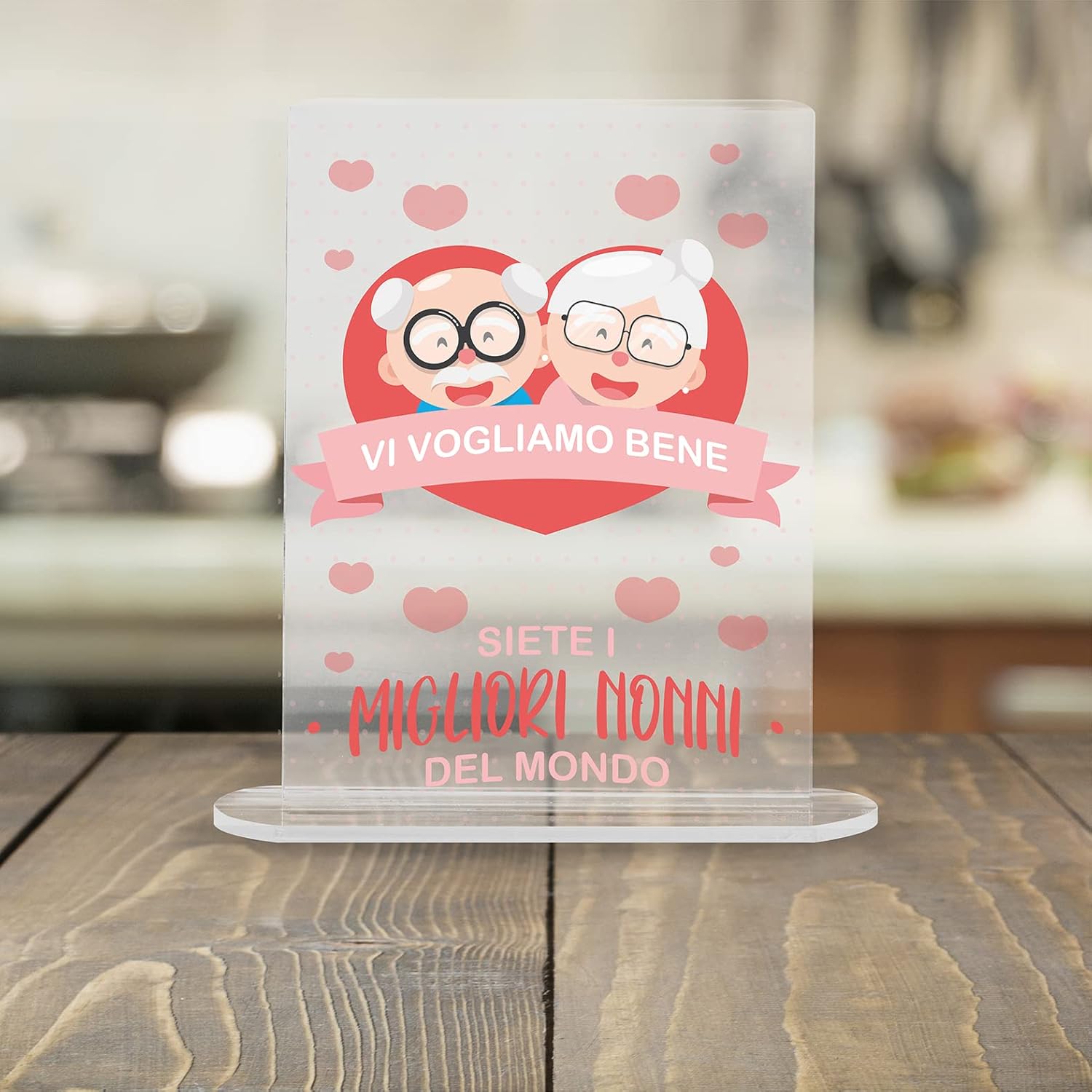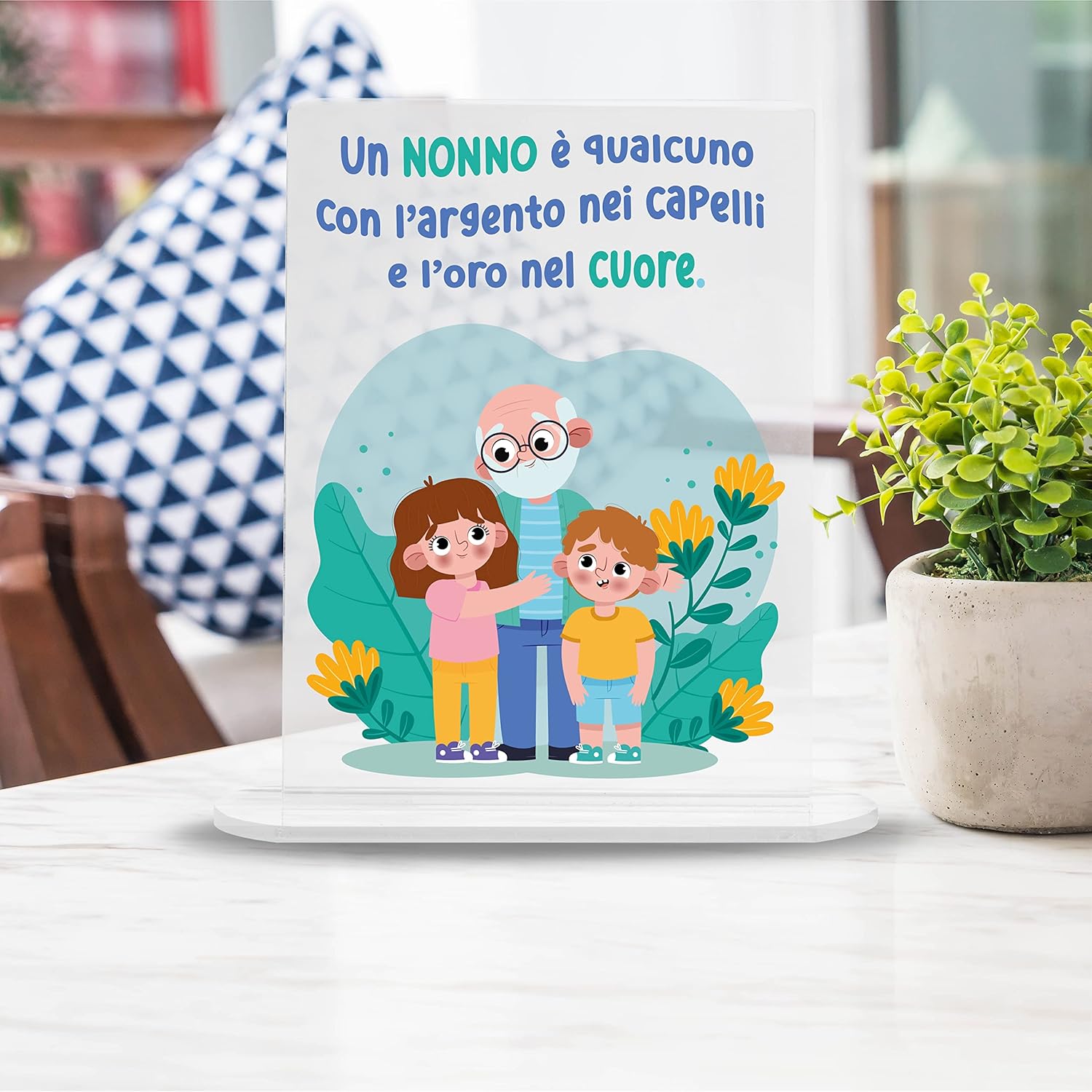 Celebra l'amore e la saggezza dei tuoi nonni con la nostra Targa in Plexiglass Personalizzata. Realizzata in plexiglass acrilico trasparente di alta qualità, questa targa misura 15x20 cm e presenta grafiche originali e uniche, pensate per rendere speciale ogni occasione. È il regalo ideale per la Festa dei Nonni, anniversari o semplicemente per dimostrare il tuo affetto.